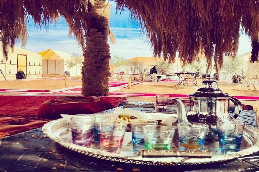 Nach einiger Zeit, um die Sanddünen und die umliegende Landschaft zu bewundern, machen Sie sich bereit für ein marokkanisches Abendessen, das unter den Sternen am Lagerfeuer serviert wird. Spät in der Nacht werden Sie Ihre lokalen Nomadenwirte mit ihrer lokalen Musik und Trommeln unterhalten.