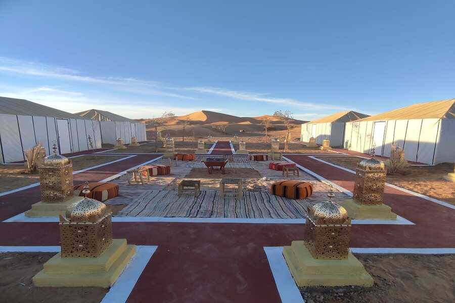 Finden Sie unseren Fahrer, der am frühen Morgen in Ihrer Unterkunft in Fes auf Sie wartet, um zu einer der schönsten Wüsten-Sahara-Reisen nach Marrakesch zu fahren. Genießen Sie den Komfort des Fahrzeugs, während Sie aus einer wunderschönen Landschaft auf der Straße fahren. Sie können unseren Fahrer bitten Hör auf, wenn du eine Pause brauchst. In Ifrane, der kleinsten schönen Stadt Marokkos, die wie eine kleine Schweiz aussieht, können Sie einen Ort finden, an dem Sie zu Mittag essen können, oder Sie können auf der Straße nach Merzouga unvergessliche Fotos machen. Wenn wir von Midelt und anderen wunderschönen Städten und Dörfern mit einer weiten Natur von Palmen und atemberaubenden Bergen vorbeikommen, erreichen Sie den Eingang der Wüste, während Sie unsere Mitarbeiter treffen, um Ihnen einen wundervollen Moment zu ermöglichen, indem Sie auf einem Kamel zum Meer reiten Wüstencamp, in diesem Moment treffen Sie die Nomaden und wissen mehr über ihre Kultur, bleiben Sie eine Nacht im Biwak und unter dem Dunkelblau und den funkelnden Sternen.