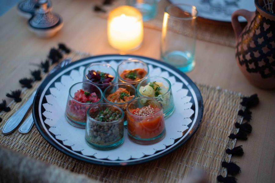 • Entspannen Sie beim Abendessen in einem wunderbaren Riad in der Medina von Marrakesch mit marokkanischer Gastronomie