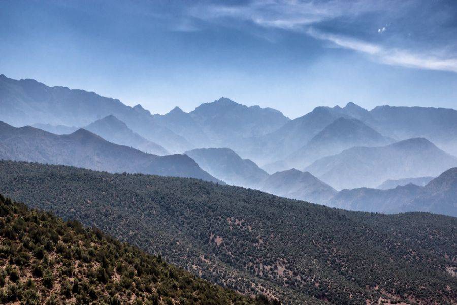 Oben angekommen, werden Sie mit einem kilometerweiten Panoramablick über die abwechslungsreiche Landschaft Marokkos belohnt. Halten Sie den Moment mit Fotos fest und genießen Sie den majestätischen Anblick der umliegenden Gipfel und Täler.