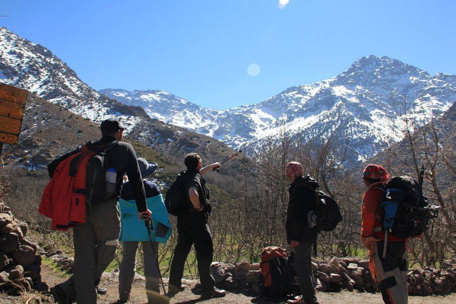 Ihre geführte Wanderung beginnt in Imlil. Der Pfad schlängelt sich durch die malerische Landschaft des Imlil-Tals. Sie wandern vorbei an rauschenden Wasserfällen und traditionellen Berberdörfern wie Ait Mizan, Targa und Imoula.