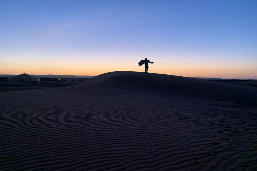 - Wenn Sie Sandboarding in den Dünen von Erg Chebbi erleben möchten, gibt es einige Sandboards in der Lodge, die Sie mit ins Camp nehmen können. Fragen Sie einfach danach und wenn verfügbar, erhalten Sie einen Preis von 10 EUR