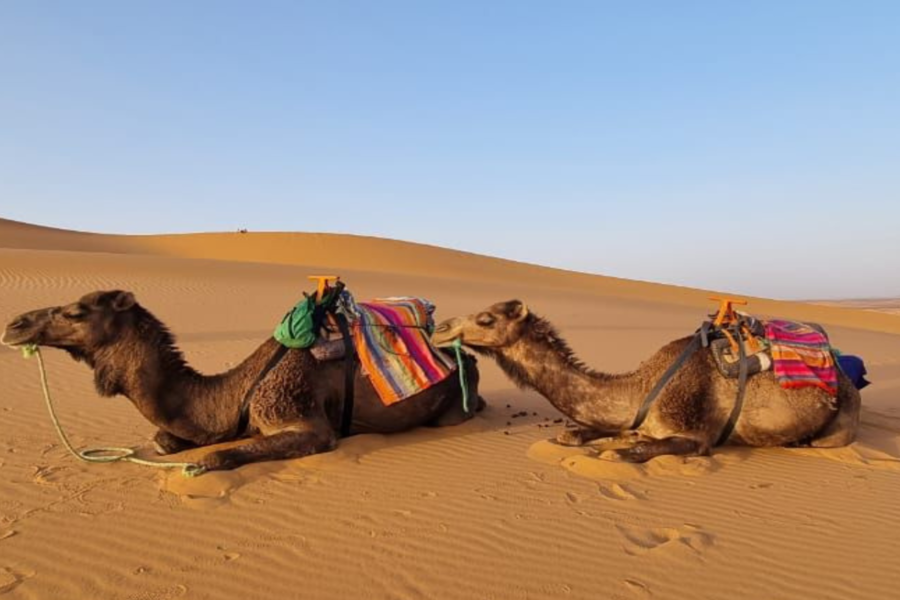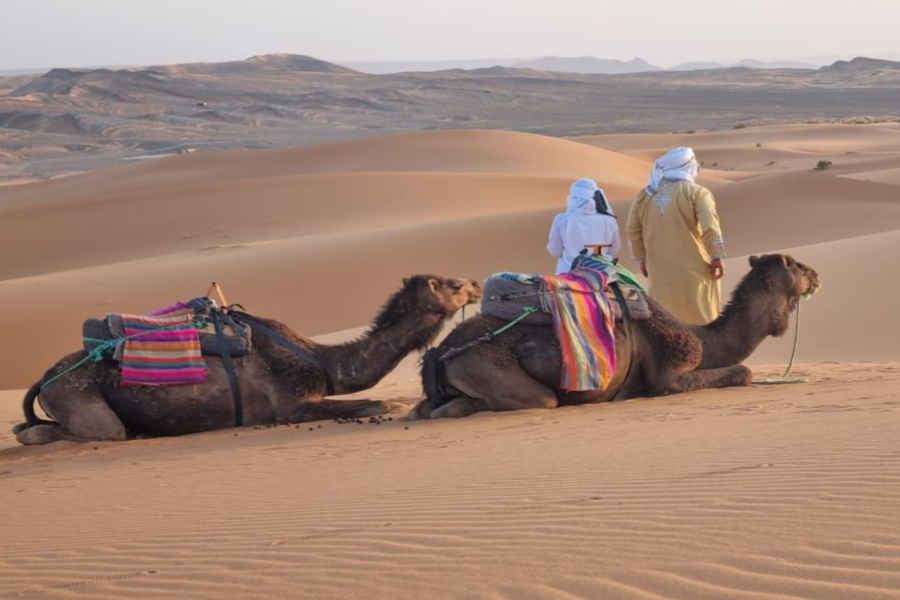 - Bitte tragen Sie Jeans, Hosen oder lange Shorts für den Kamelritt, um eine bequeme Wanderung in den Dünen von Erg Chebbi zu unternehmen.