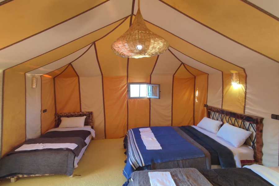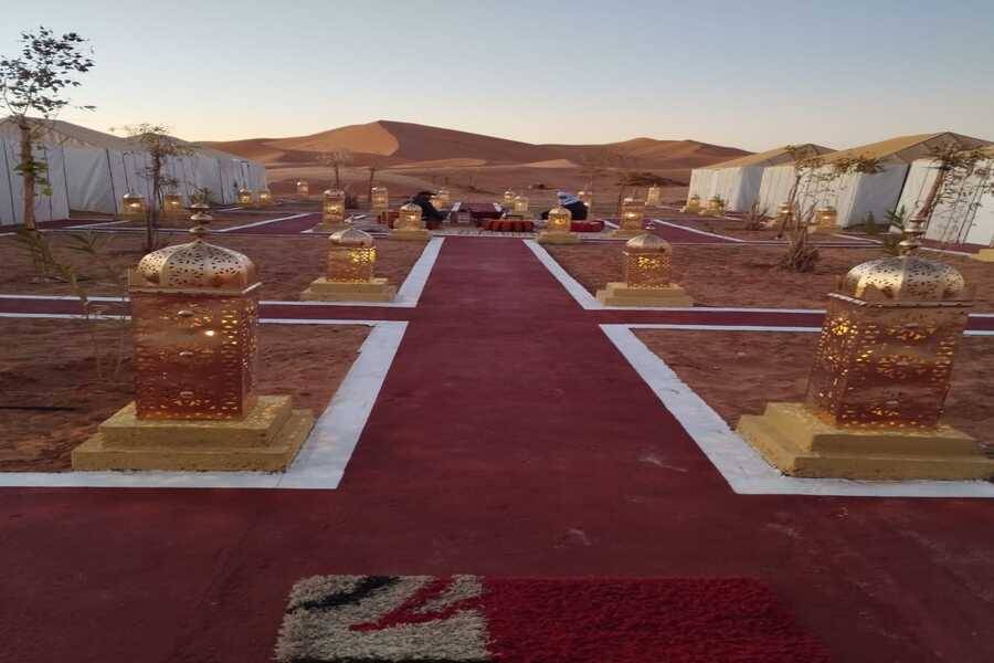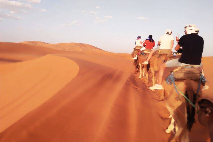 Finden Sie unseren Fahrer, der am frühen Morgen in Ihrer Unterkunft in Fes auf Sie wartet, um zu einer der schönsten Wüsten-Sahara-Reisen nach Marrakesch zu fahren. Genießen Sie den Komfort des Fahrzeugs, während Sie aus einer wunderschönen Landschaft auf der Straße fahren. Sie können unseren Fahrer bitten Hör auf, wenn du eine Pause brauchst. In Ifrane, der kleinsten schönen Stadt Marokkos, die wie eine kleine Schweiz aussieht, können Sie einen Ort finden, an dem Sie zu Mittag essen können, oder Sie können auf der Straße nach Merzouga unvergessliche Fotos machen. Wenn wir von Midelt und anderen wunderschönen Städten und Dörfern mit einer weiten Natur von Palmen und atemberaubenden Bergen vorbeikommen, erreichen Sie den Eingang der Wüste, während Sie unsere Mitarbeiter treffen, um Ihnen einen wundervollen Moment zu ermöglichen, indem Sie auf einem Kamel zum Meer reiten Wüstencamp, in diesem Moment treffen Sie die Nomaden und wissen mehr über ihre Kultur, bleiben Sie eine Nacht im Biwak und unter dem Dunkelblau und den funkelnden Sternen.