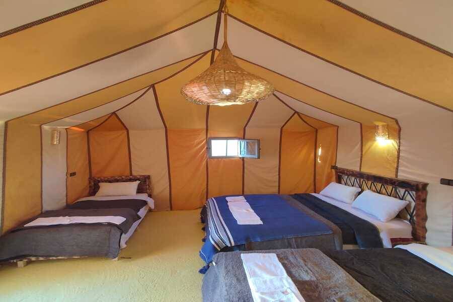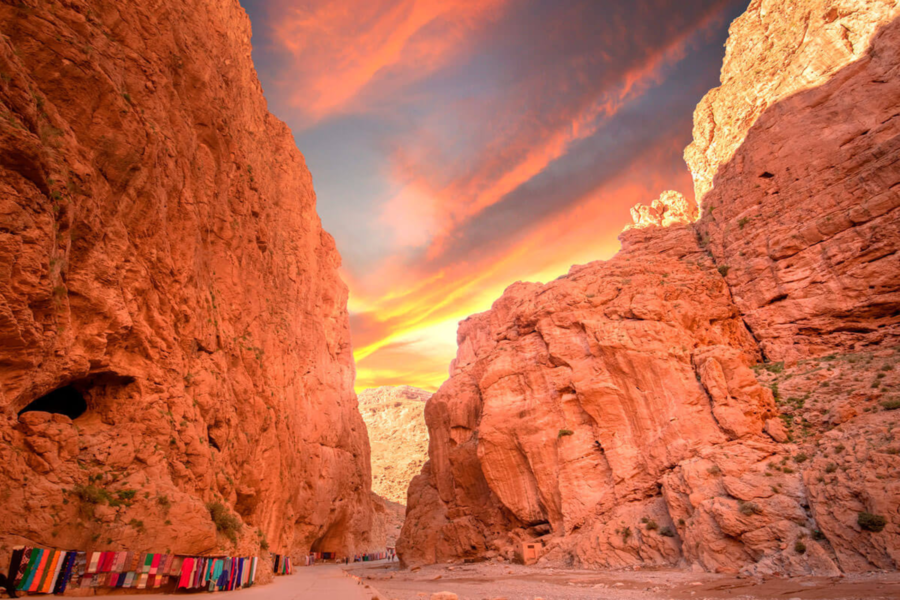 Nach dem Frühstück im Biwak verlassen Sie das Wüstenlager mit erstaunlichen Momenten und fahren nach Errfoud, wo Sie die Fossilien besichtigen und mehr über die sehr alten Gegenstände in diesem Dorf erfahren. Als nächstes fahren Sie nach Tinjdad und ein Gefühl für die Sahara-Landschaft bekommen. Probieren Sie die marokkanische Gastronomie, während Sie Ihr Mittagessen in einem der guten Restaurants auf der Straße genießen. Sehen Sie die Oase von Tafilalt auf der Straße, bis Sie zu den Schluchten von Todra kommen, lassen Sie sich von der ruhigen und weiten Natur an diesem Ort überraschen und genießen Sie auch einige Fotos zwischen den beiden Schluchten. Als nächstes fahren Sie nach Tinighir, einem kleinen Berberdorf, erfahren mehr über die Berberkultur und übernachten in einem der komfortablen Riads mit einem köstlichen Abendessen.