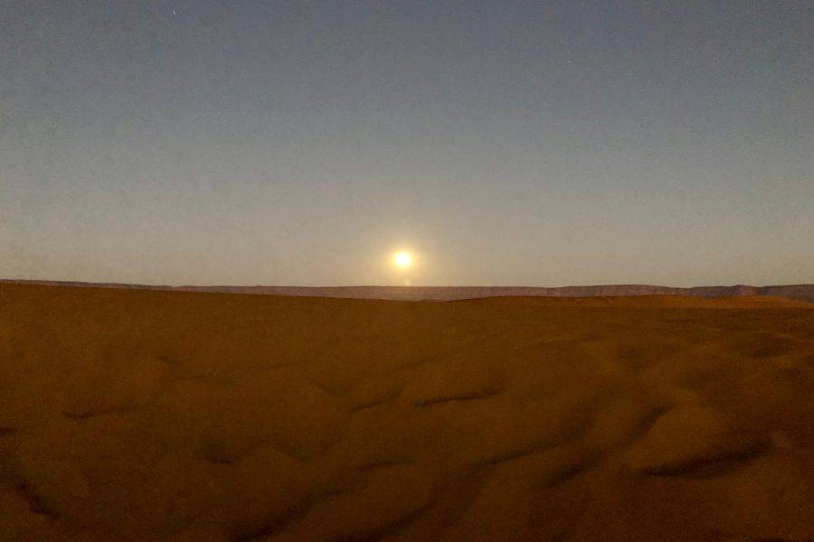 Beginnen Sie ein extremes Straßenabenteuer vom Atlantik aus, der durch die Tür der marokkanischen Wüste führt, und genießen Sie eine bezaubernde Nacht unter dem dunkelblauen Himmel und den funkelnden Sternen mit Nomaden und ihrer traditionellen afro-marokkanischen Musik am Lagerfeuer.