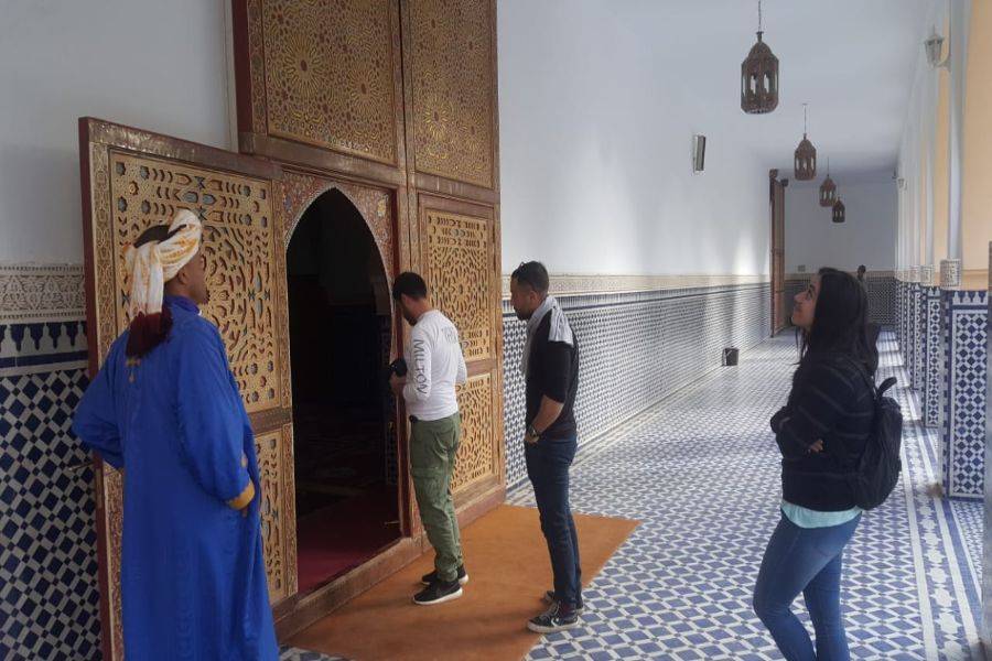 Der nächste Besuch wird Erassani sein, das unter seinem Mausoleum Moulay Ali Sheriff bekannt ist, einem wunderschönen friedlichen, ruhigen und historischen Ort. Es ist mit wunderschönen Fliesen und einem umzäunten Garten mit zahlreichen Dattelbäumen geschmückt, die mit Datteln beladen sind. Es ist auch ein direktes Tor zur marokkanischen Wüste.