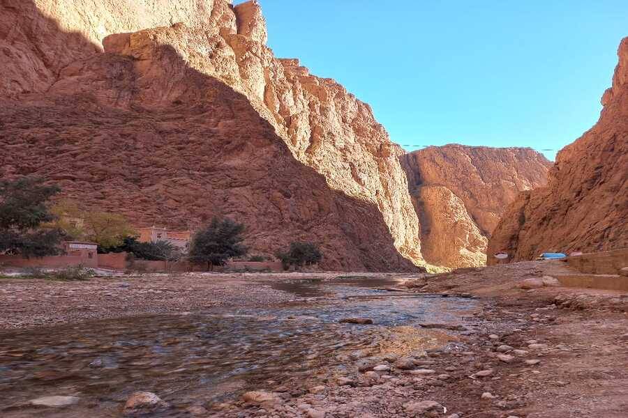 An diesem Punkt nehmen wir die Straße zurück nach Arfoud, die Straße ist ziemlich außergewöhnlich. Wir fahren durch Palmen und wunderschöne Sehenswürdigkeiten. Sie können den Fahrer bitten, unterwegs einige Fotos zu machen. Erkunden Sie die faszinierende Landschaft der Todgha-Schlucht, einer Reihe von Kalkstein-Flussschluchten im östlichen Teil des Hohen Atlas. Es ist ein Wunder auf Erden, gut für Leute, die gerne wandern und klettern. Ein kurzer Spaziergang durch die Schluchten Todgha und Dades ist eine angenehme Erfahrung und sehr angenehm, da viele Touristen den Klang der Schluchten, die Fülle der Menschen und das murmelnde Wasser genießen.