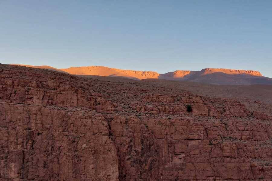 Wir sehen weiterhin die natürlichen Landschaften entlang der Straße des Hohen Atlas und fahren dann zu einem schönen und guten Ort, Agdz, einer kleinen Stadt mitten im Süden Marokkos. Genießen Sie die Aussicht auf das Atlasgebirge und entdecken Sie die alten Amazigh-Architekturen mit alten Kasbahs. Siehe auch den Jbel Kissane, der für seine Tajine-Form bekannt ist. Wie der Name schon sagt, bedeutet Agdz "Ruheplatz" ist ein wohlverdienter Name und es ist ein Ort, an dem Sie die zweite Nacht mit netten und freundlichen Berberleuten mit einer köstlichen Berber-Gastronomie verbringen werden.