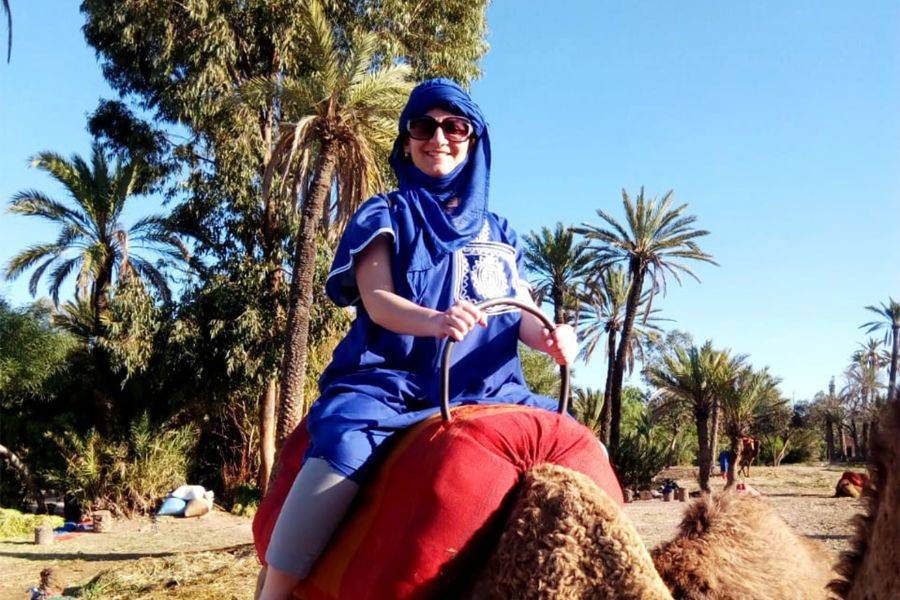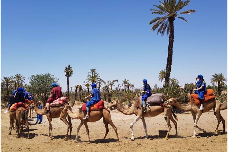 • Fahren Sie auf dem Rücken eines Kamels durch die Palmenstraße und tragen Sie die Sahara-Kleidung.