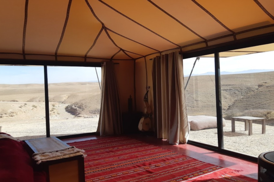 Entfliehen Sie der überfüllten Stadt und begeben Sie sich an einen magischen, ruhigen Ort in der Agafay-Wüste.