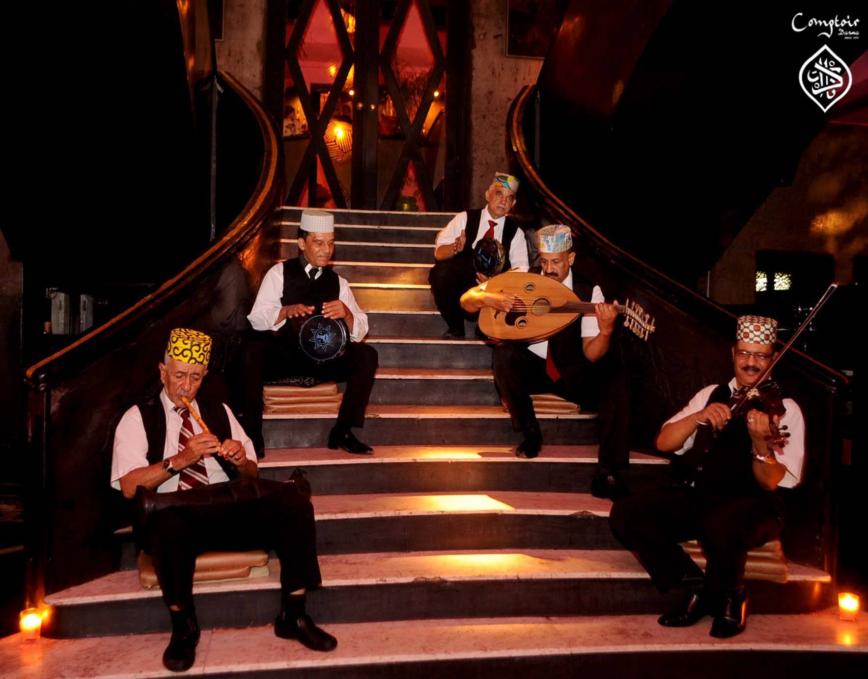 Dans une ambiance feutrée et festive Le Comptoir vous invite à une somptueuse soirée spectacle à Marrakech, où la musique et les danseuses orientales vous emmènent dans univers alléchant hors du commun. Les amateurs de la cuisine marocaine ont l’occasion de découvrir le subtile mariage sucré/salé et le magnifique mélange des épices colorés via les plats marocains authentiques: tajine, couscous, mechouer, pastilla,...