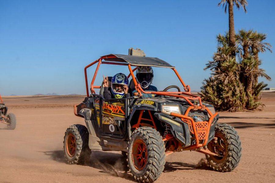 • Bewundern Sie die Schönheit der Straße und freuen Sie sich darauf, mit einem Buggy in den Palmen von Marrakesch zu fahren.