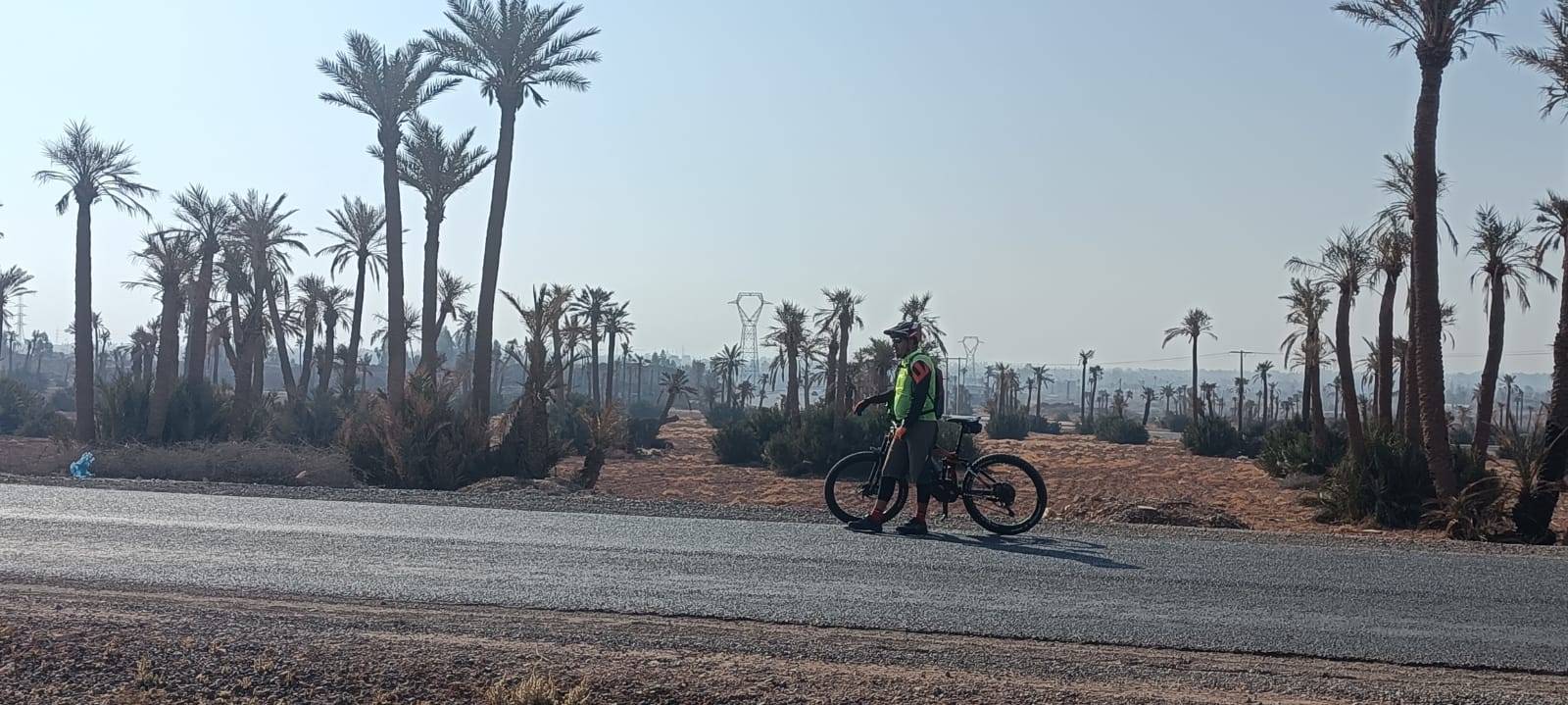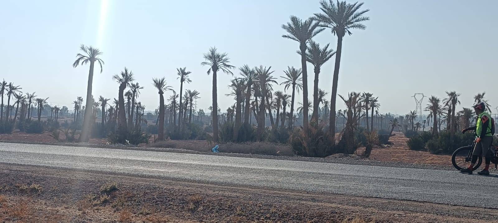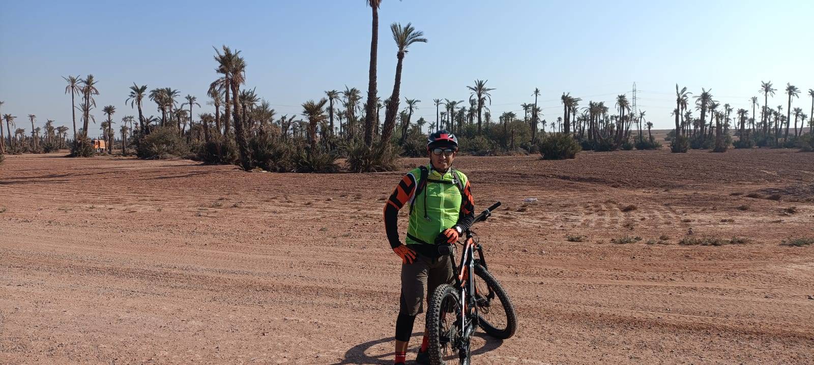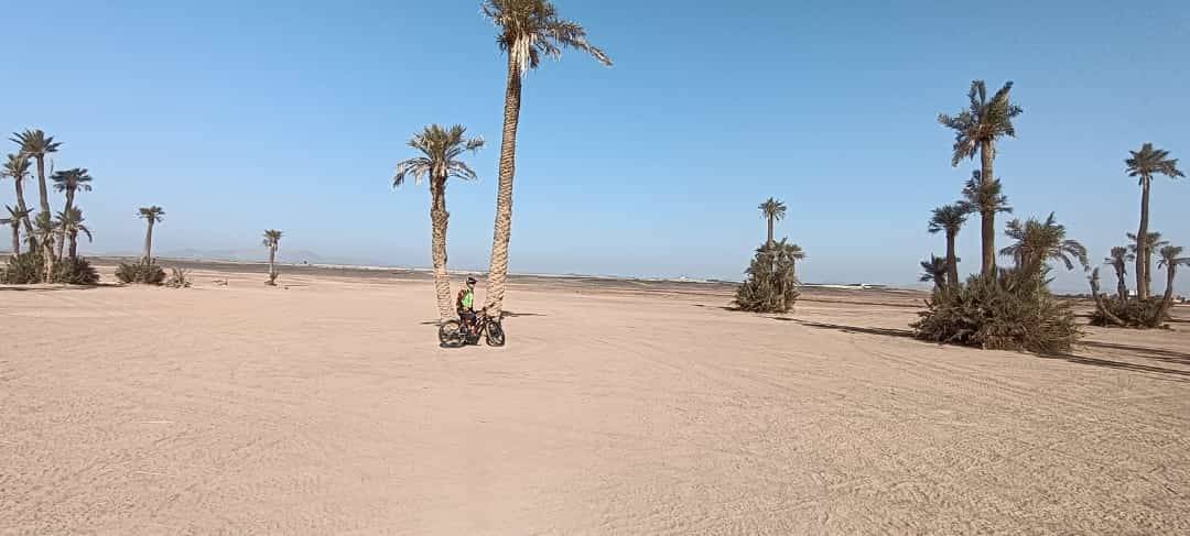 Radtour in der Palmeraie (Palmenhain), einer Palmenoase mit mehreren hunderttausend Palmen außerhalb von Marrakesch, am Rande des nördlichen Teils der Stadt auf einer Höhe von 580 m über dem Meeresspiegel gelegen, misst sie 8,0 km Länge und Mit einer Fläche von 140 km2 ist dieser Teil von Marrakesch als eines der beliebtesten Reiseziele in Marrakesch für Motorsport-Enthusiasten wie ATVs 4/4 oder zum Kamelreiten oder sogar zum Ballonfahren bekannt.