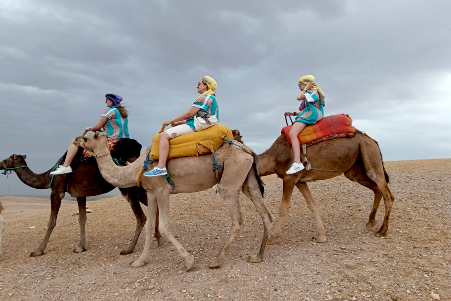 Geniet van een unieke kamelentocht bij zonsondergang door de schilderachtige Agafay-woestijn.