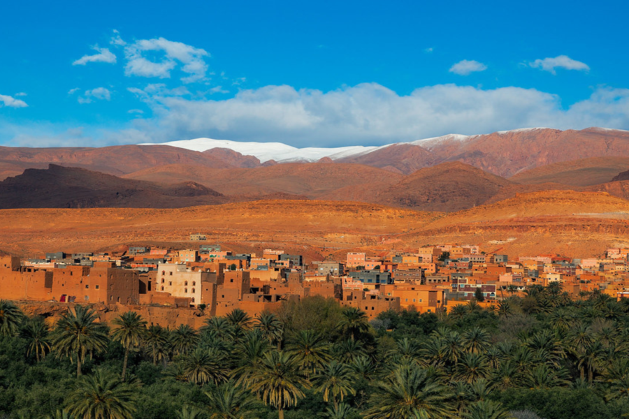 Die Abfahrt von Marrakesch am frühen Morgen über den Col Tichka 2260 m, Besuch der Kasbah Ait Benhaddou, Mittagessen in Ouarzazate, Besuch der Kasbah Ait Ben Haddou. Sie werden durch die verschiedenen und atemberaubenden Landschaften fahren und Sie können auch die sehen Änderung der Gebirgsstrukturen in Richtung Skoura-Oase, Kalaat M'gouna, dem Tal der Rosen, um den Dadès zu erreichen. Übernachtung in Tinghir mit Halbpension