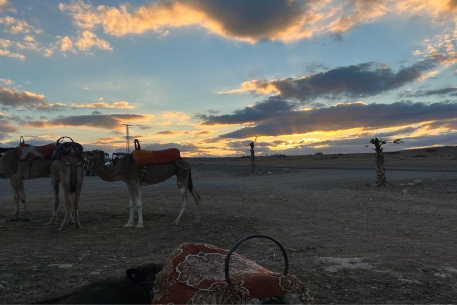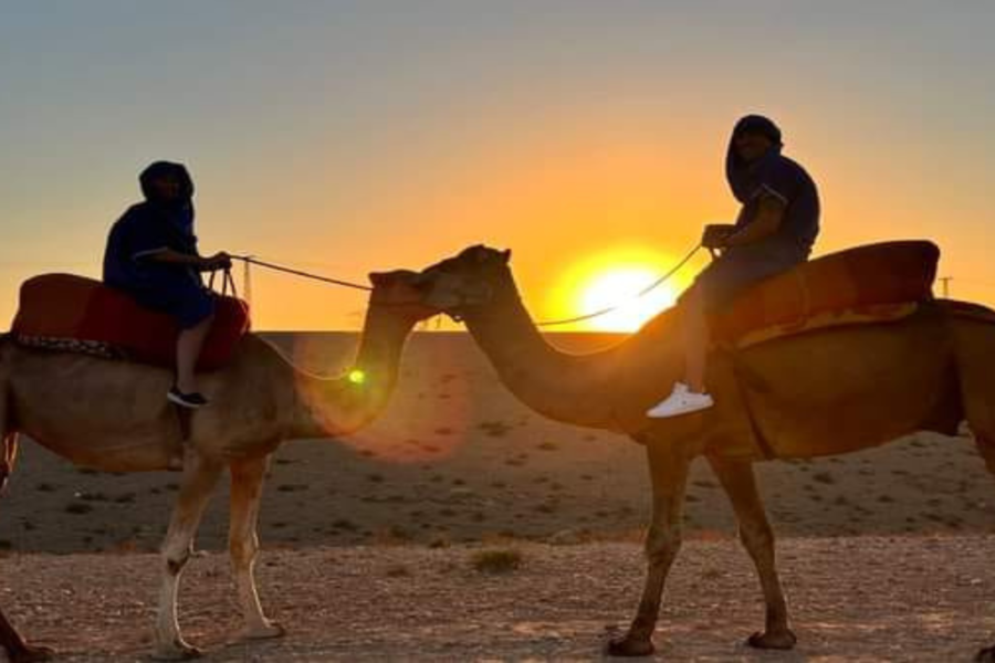 Genießen Sie beim Kameltrekking einen unvergesslichen Sonnenuntergang in der Agafay-Wüste